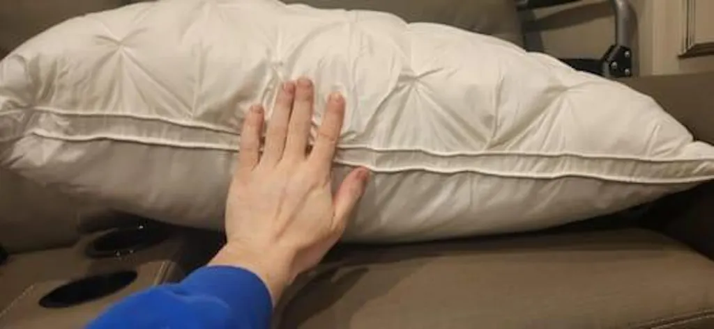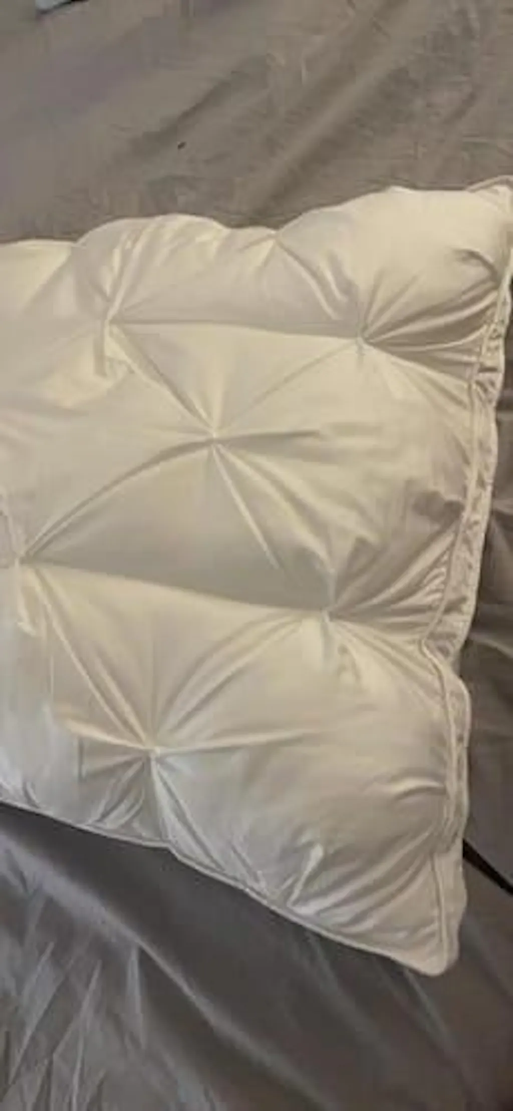 I love how comfortable and supportive this feather down pillow is. It cradles my head and neck in just the right way. I love the pleated design which comes through when you put a pillowcase on. I have neck issues and this pillow has helped to keep my spine aligned throughout the night.
